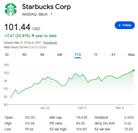 The Stock Reaction: Starbucks stock barely budged on the news but is currently up over 20% in 2026 as new CEO Brian Niccol tries turning around a company that's been bleeding customers to cheaper, better coffee options for years.
