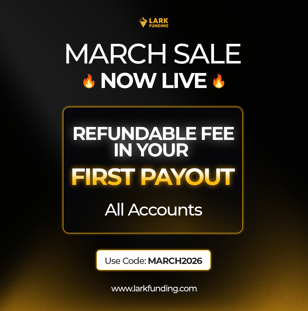 The Deal: Use code MARCH2026 at larkfunding.com and your challenge fee becomes fully refundable. Pass and hit your first payout? You get that fee back on top of your profits.