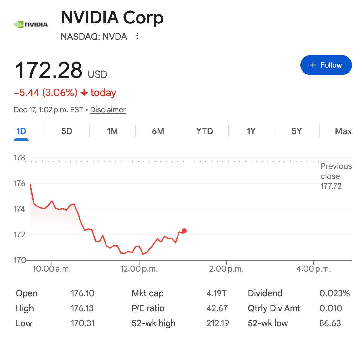 Here's what happened: The market was vibing until Oracle dropped 4% and Broadcom tanked 5%. Nvidia, not wanting to be left out of the misery, joined in and fell 3.5%.