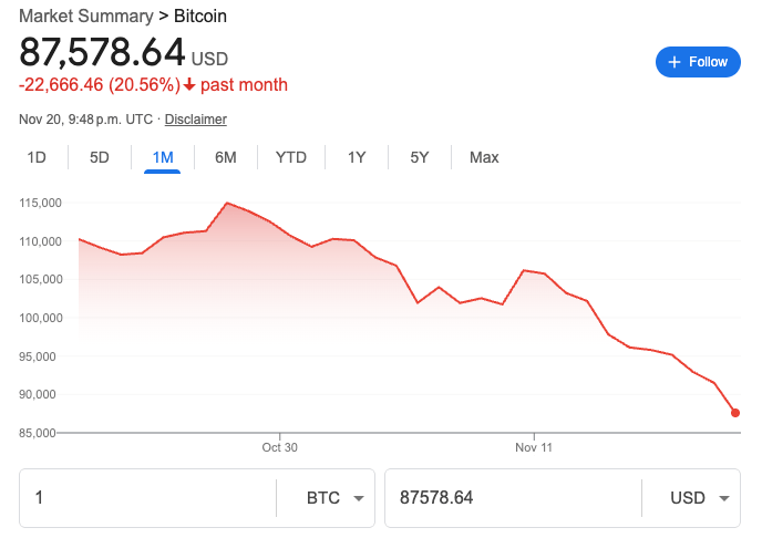 Bitcoin got smoked, dropping over 5% to $86,325, its lowest since April.