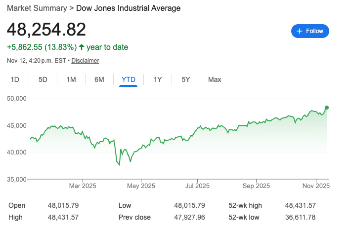 Dow Jones | 48,254 | +0.68% |