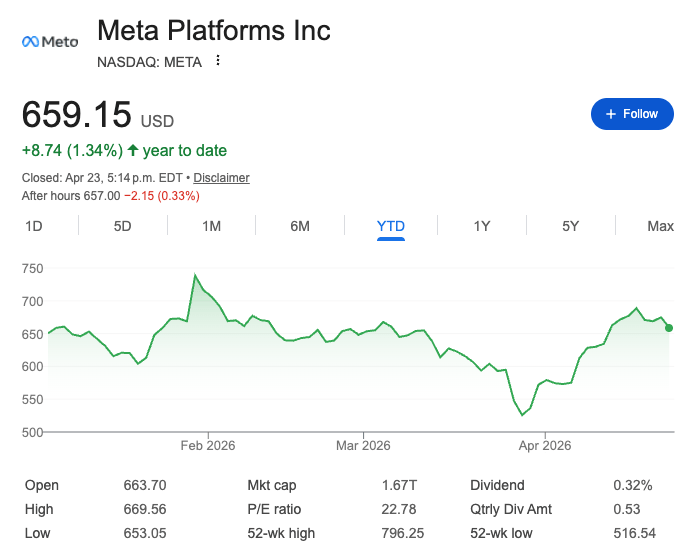 $META stock is roughly flat for the year (so far)