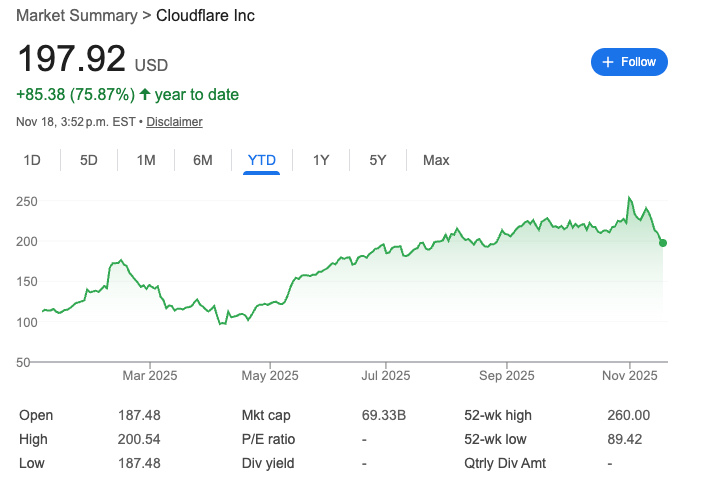 Cloudflare outage. Bitcoin slipping. Broad tech selling.