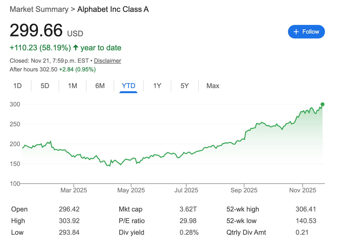 When Google climbs the ladder, it drags indexes, ETFs, and risk appetite with it.
