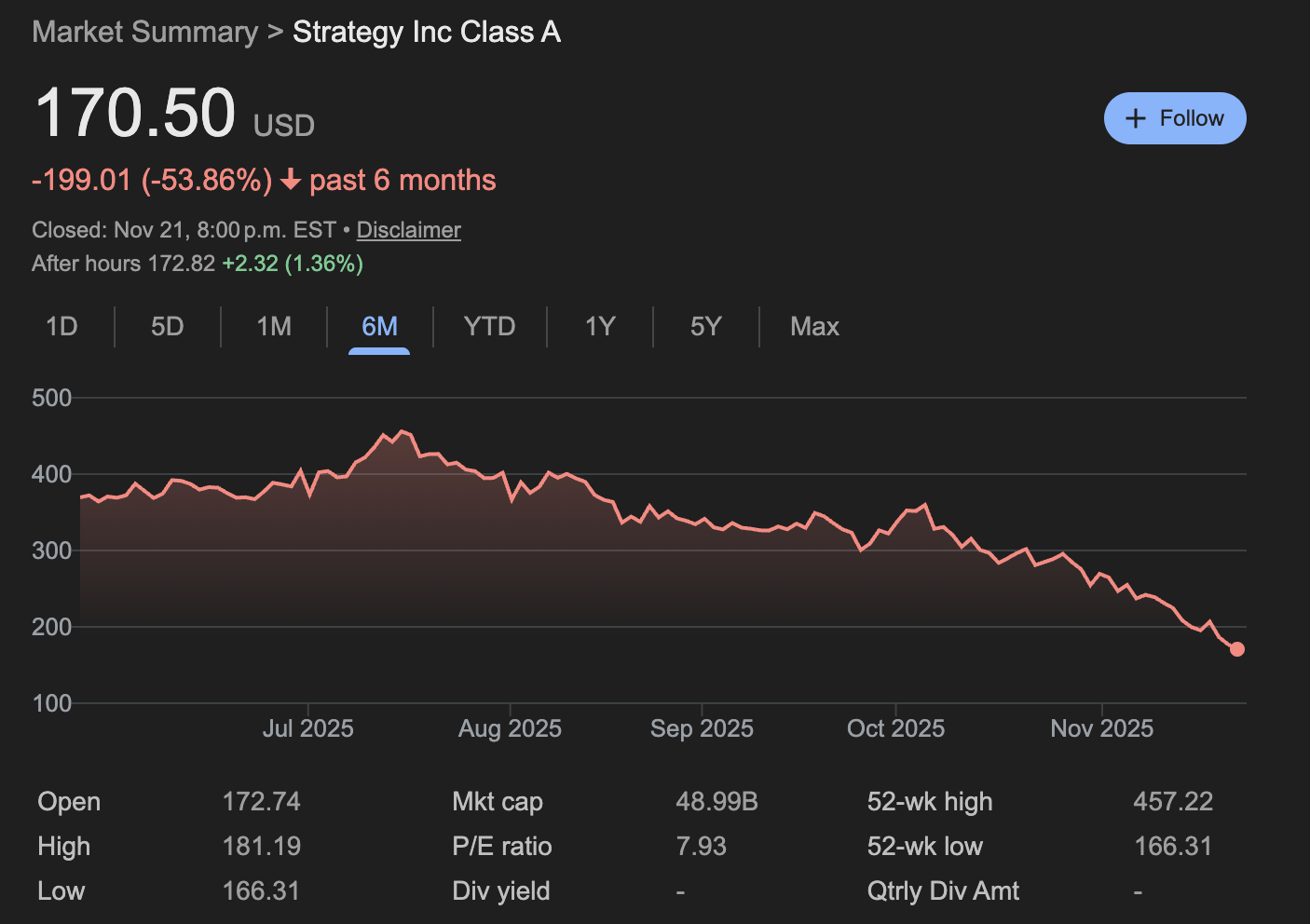Bitcoin just flushed to a low of $80,500, which puts it only ~$6,000 above MicroStrategy’s average purchase price of $74,433. That means the entire mountain of Bitcoin Saylor stacked over the years — often at literal all-time highs — is now 8% away from going red.